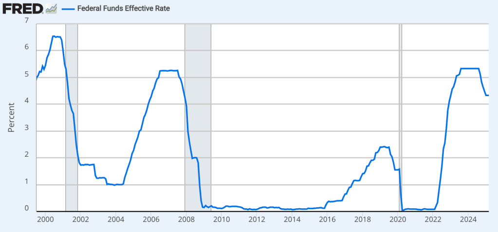 - And then, to deal with inflation, rates went back up, bursting the tech bubble as we entered today’s weird post-pandemic, post-crypto, GenAI world (blog post).