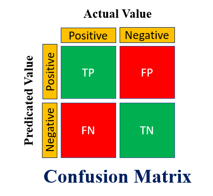 - Confusion Matrix: true positives (TP), true negatives (TN), false positives (FP), false negatives (FN);